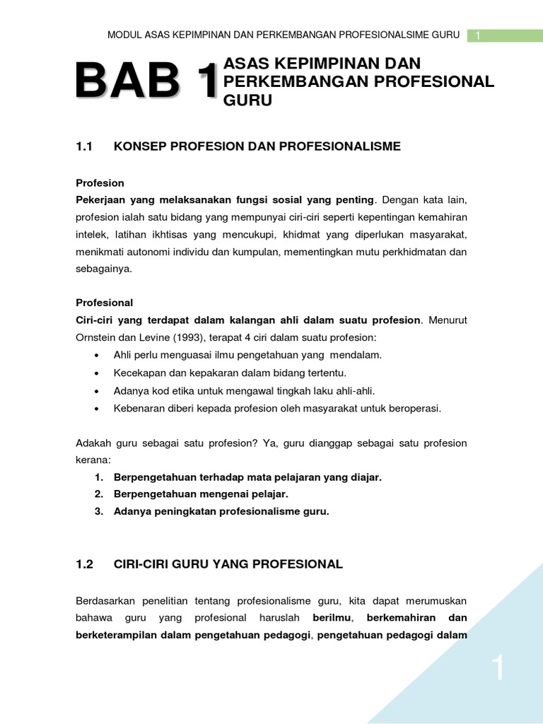 Asas Kepimpinan Dan Perkembangan Profesional Guru 1 1 Konsep Profesion Dan Profesionalisme