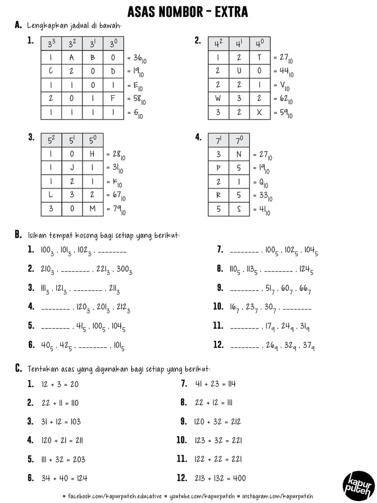 Worksheet Asas Nombor Form 5 Extra
