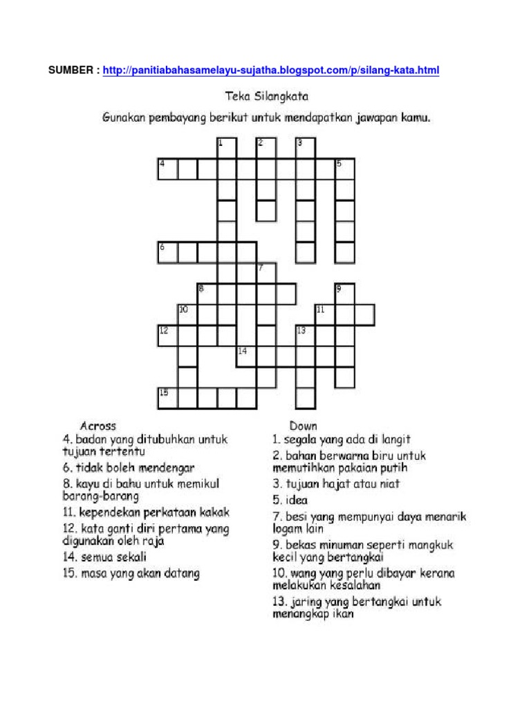 Contoh Permainan Teka Silang Kata Bahasa Melayu Sekolah Cute766