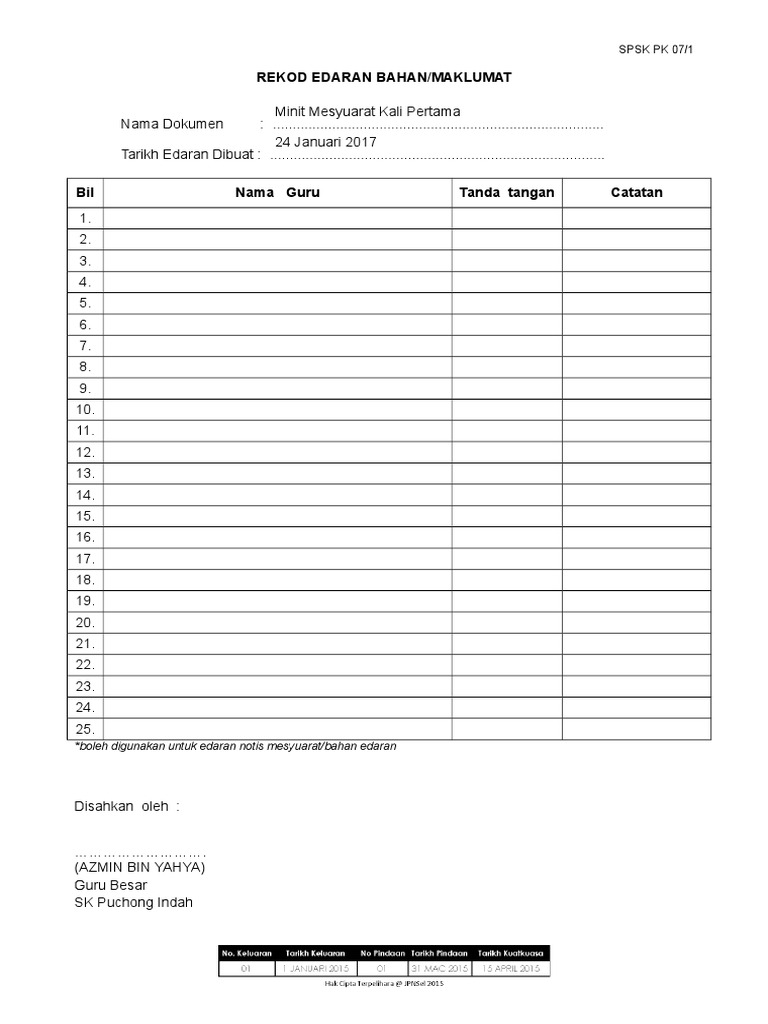Borang Pk 07 2 Senarai Kehadiran Mesyuarat