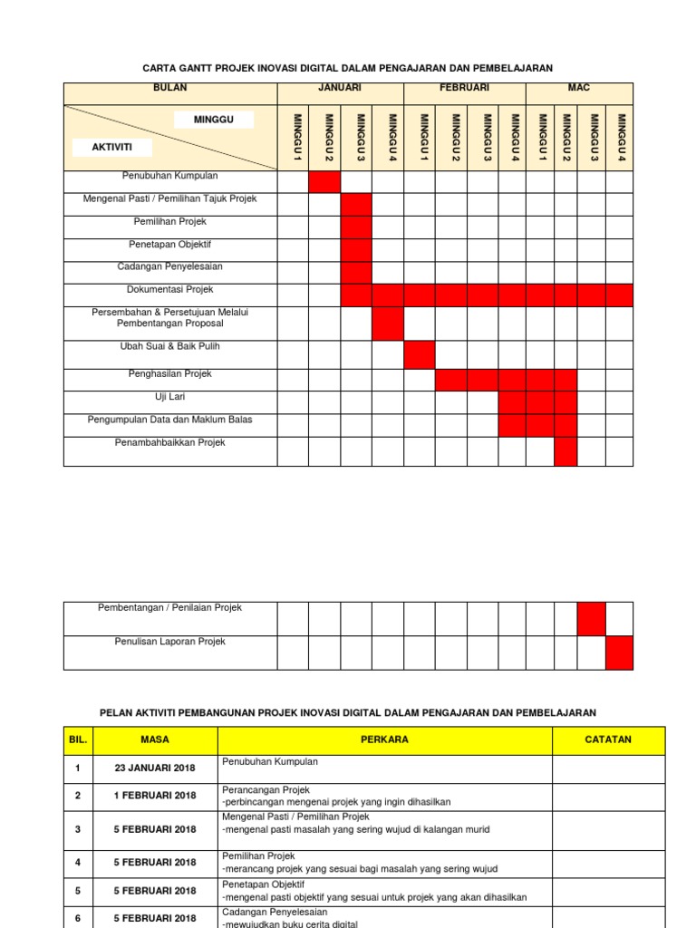 Carta Gantt Projek Inovasi Digital Dalam Pengajaran Dan Pembelajaran