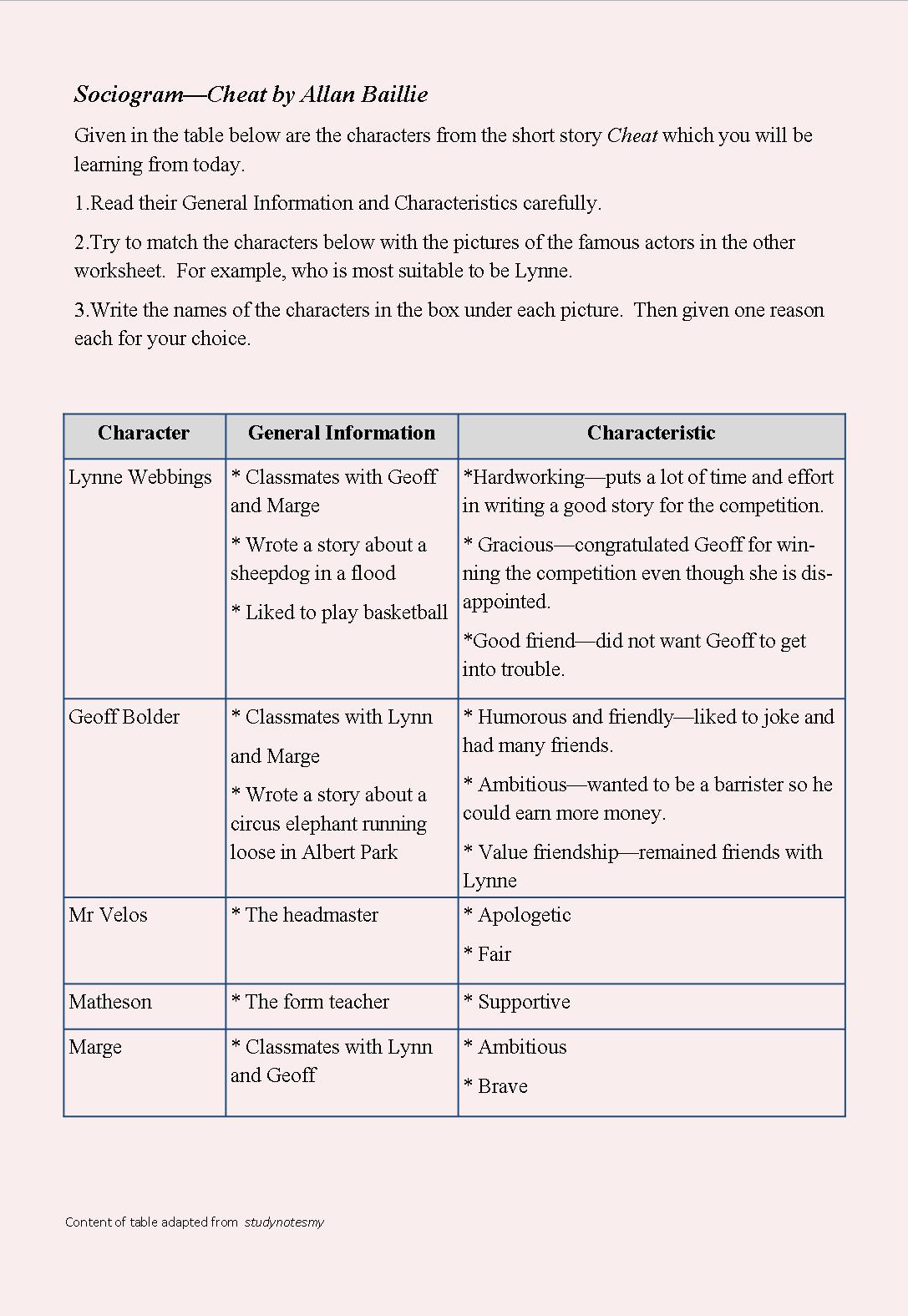 The Cooking Teacher Literature Component A Sociogram Cheat By Allan Baillie