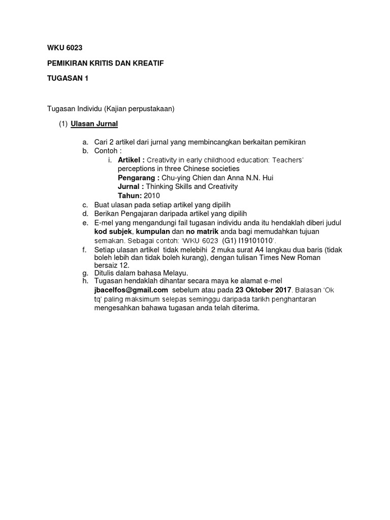 Contoh Assignment Pemikiran Kritis Dan Kreatif