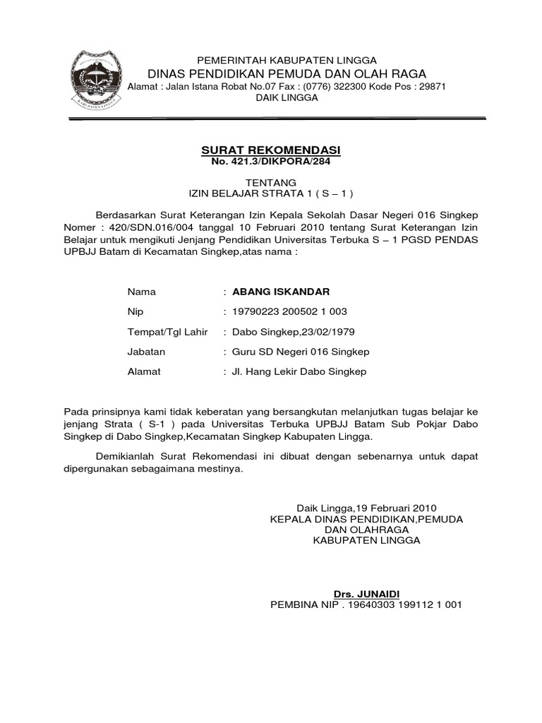 Contoh Surat Rekomendasi Sekolah Surat Sekolah Kepala Sekolah