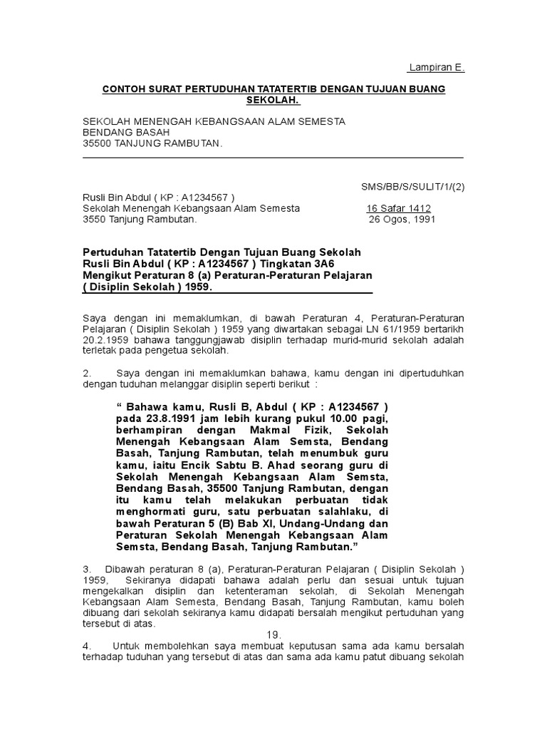 Contoh Surat Keputusan Tindakan Tatatertib B Sekolah