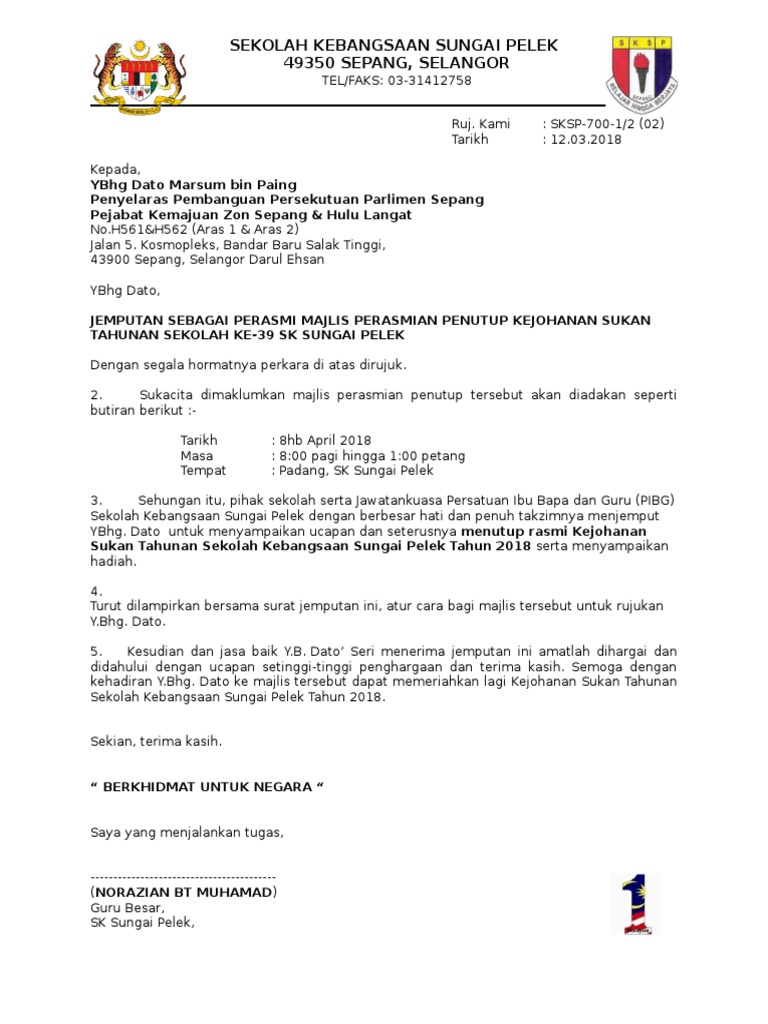 Surat Jemputan Yb Ke Sukan Tahunan