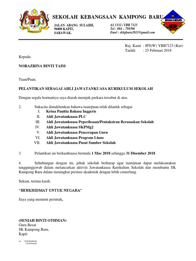 Surat Lantikan Kk 2015 Docx Document
