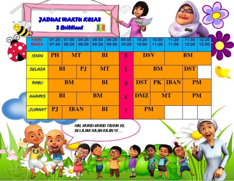 Jadual Waktu Kelas Upin Ipin Designed By Cikgu Atos Docx