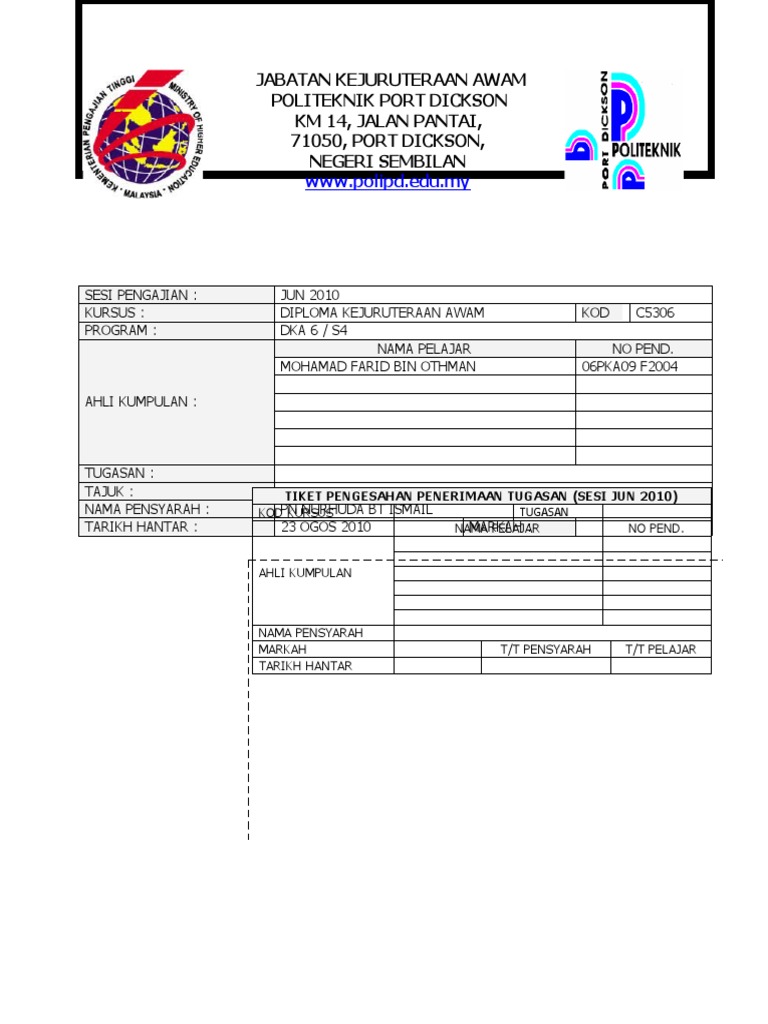 Jabatan Kejuruteraan Awam Politeknik Port Dickson Km 14 Jalan Pantai 71050 Port Dickson Negeri Sembilan
