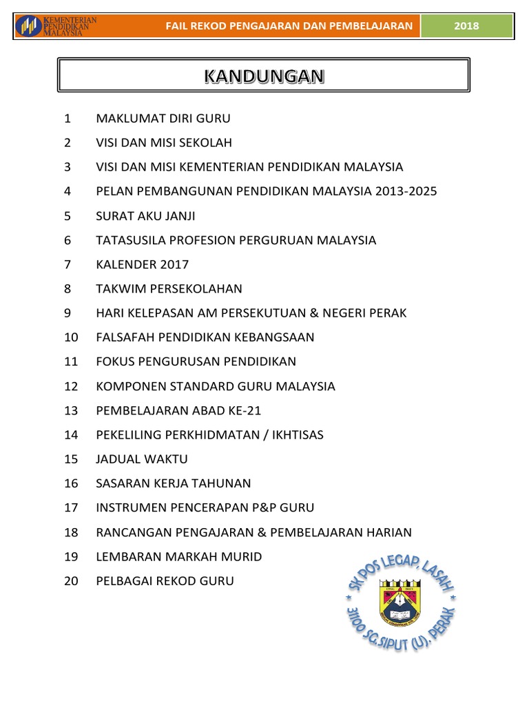 Fail Rekod Pengajaran Dan Pembelajaran 2018