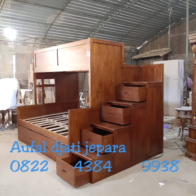 Tempat Tidur Anak Tingkat Jati Jepara Divan Bunkbed Ranjang Dipan Susun 3 Murah Shopee Indonesia