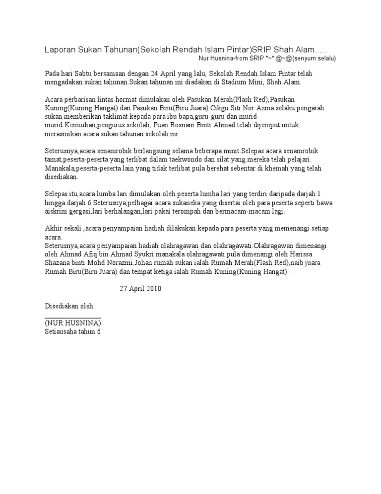 Contoh Karangan Laporan Sukan Tahunan Sekolah Ciupa Biksemad