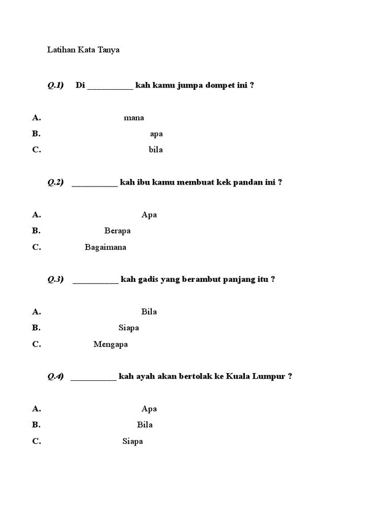 Bahasa Melayu Sekolah Rendah Latihan Kata Tanya