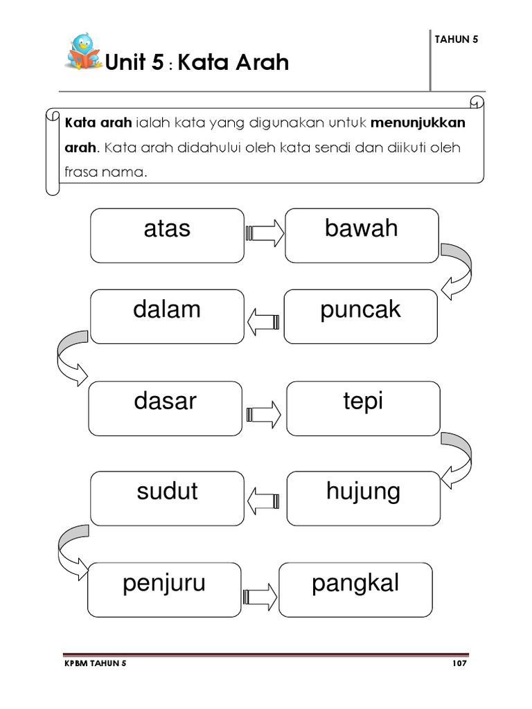 Contoh Kata Arah Tahun 2 Materi Pelajaran 1