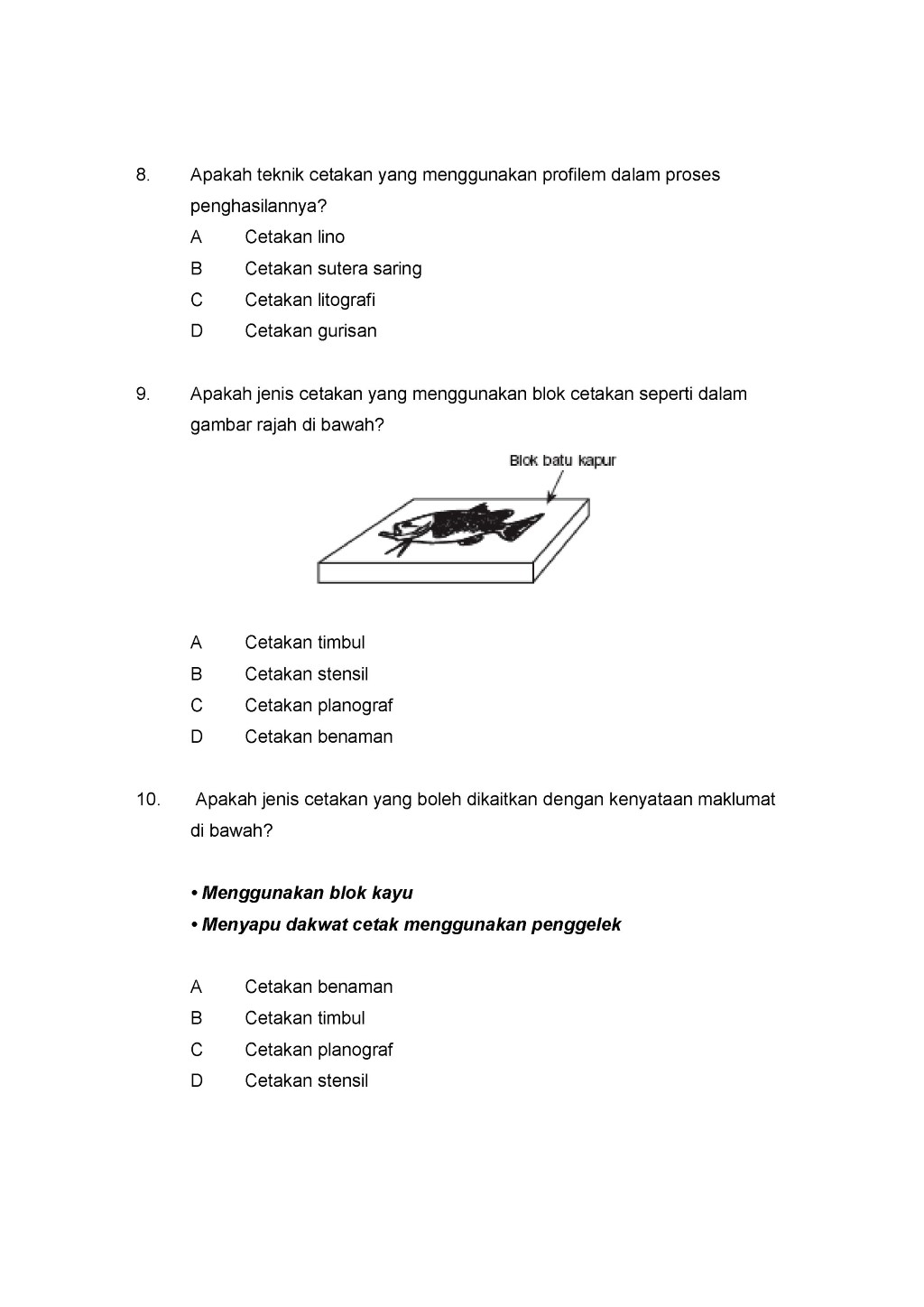 Contoh Soalan Pbs Pendidikan Seni Visual Tingkatan 2 Soalan Ap