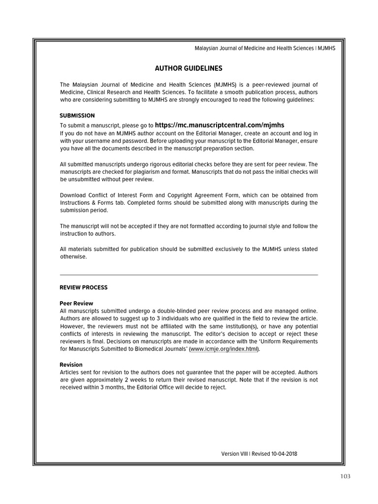 Malaysian Journal Of Medicine And Health Sciences Submission