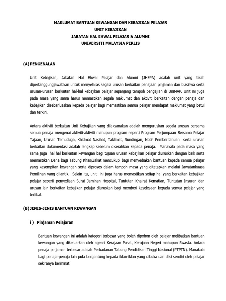 Maklumat Bantuan Kewangan Dan Kebajikan Pelajar 20142015