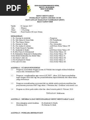 Minit Mesyuarat Pemilihan Rmt Thn 1 2018