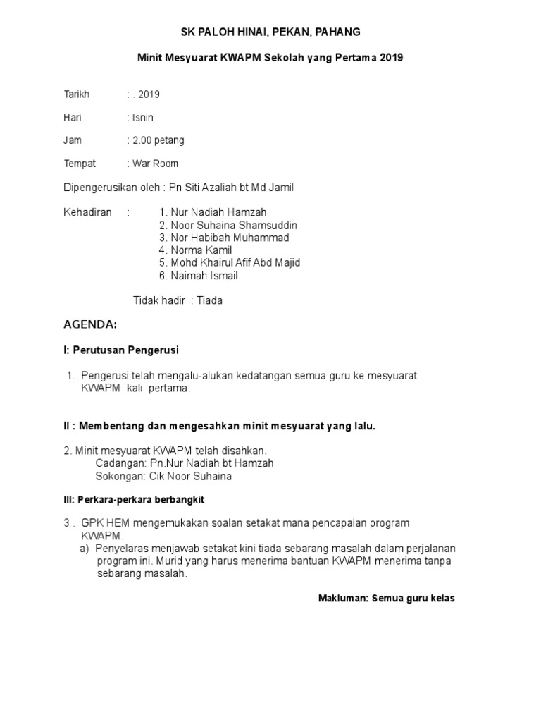 Minit Mesyuarat Pages 1 3 Text Version Anyflip