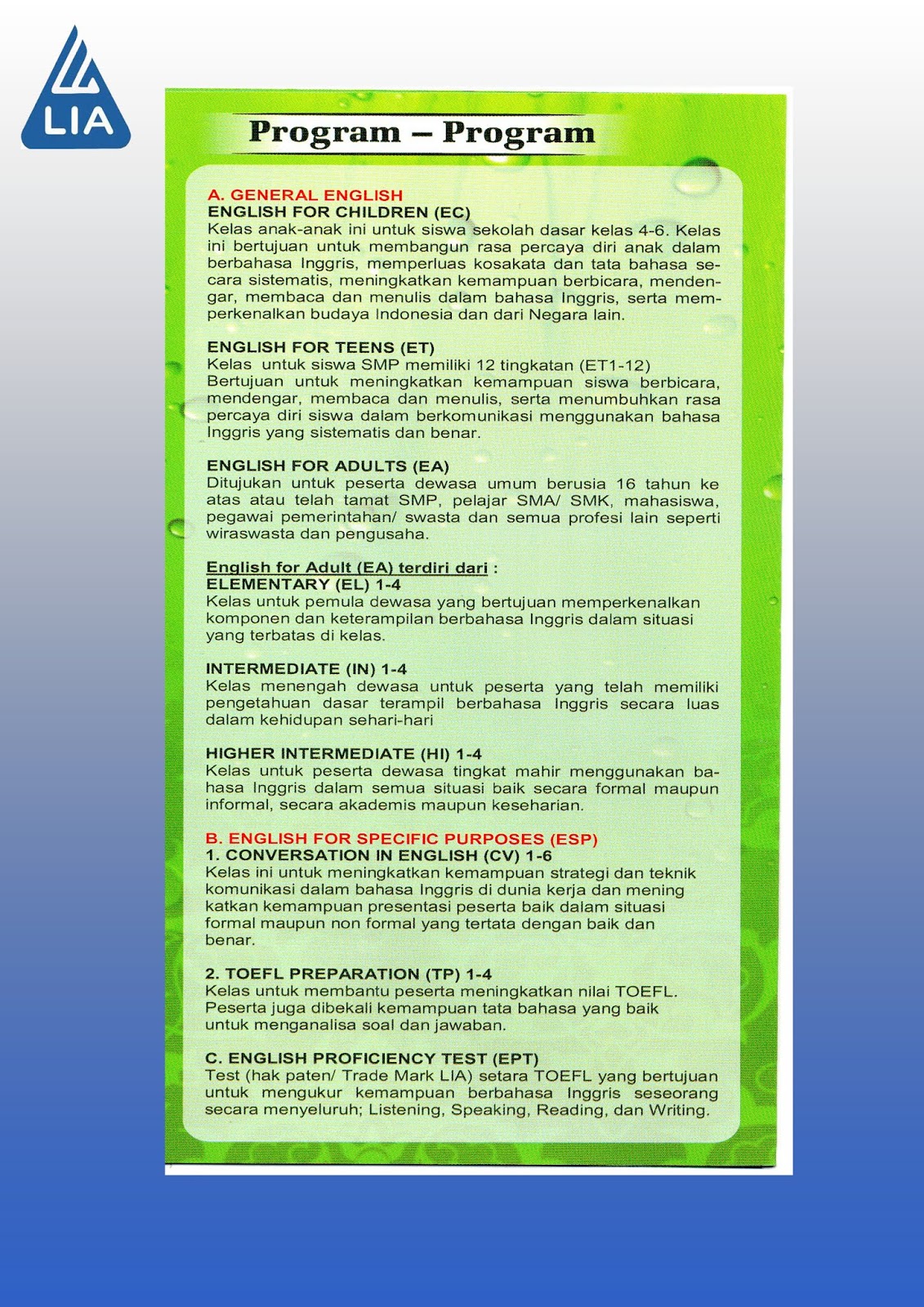 Kursus Bahasa Inggris Di Lb Lia Jambi Program Belajar Di Lb Lia Jambi
