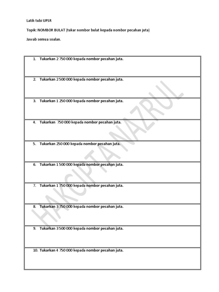 Nombor Bulat Tukar Nombor Bulat Kepada Nombor Pecahan Juta