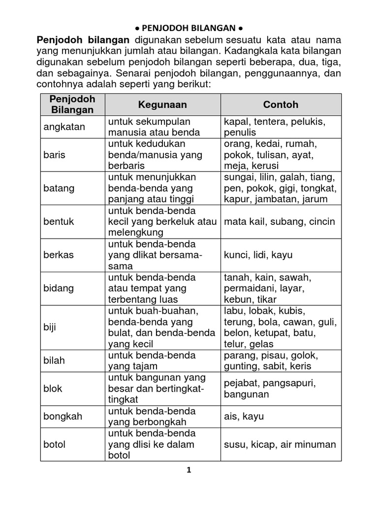 Senarai Penjodoh Bilangan Berikut Merupakan Bahan Senarai Penjodoh Bilangan Bm Modul Latihan Ini Malay Language Teaching Resources Teaching