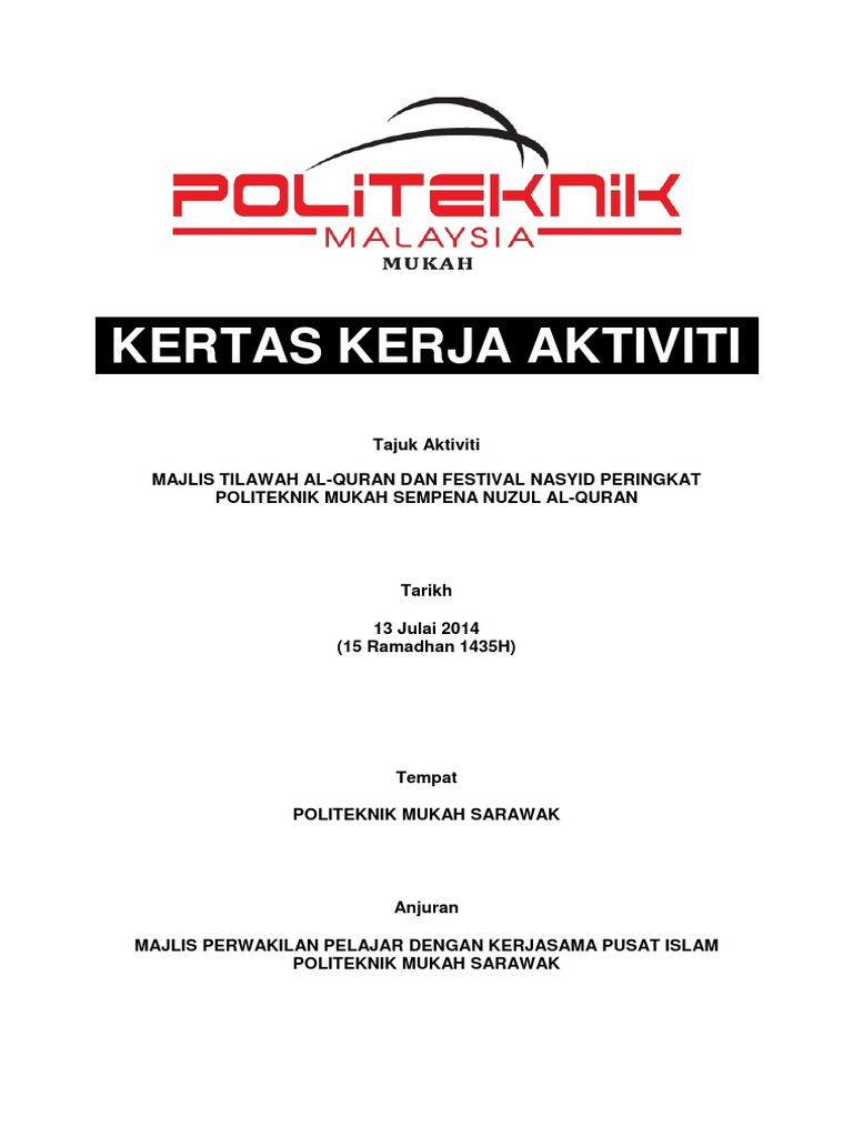 Kertas Kerja Pertandingan Tilawah Al Quran Dan Nasyid Sempena Nuzul Al Quran