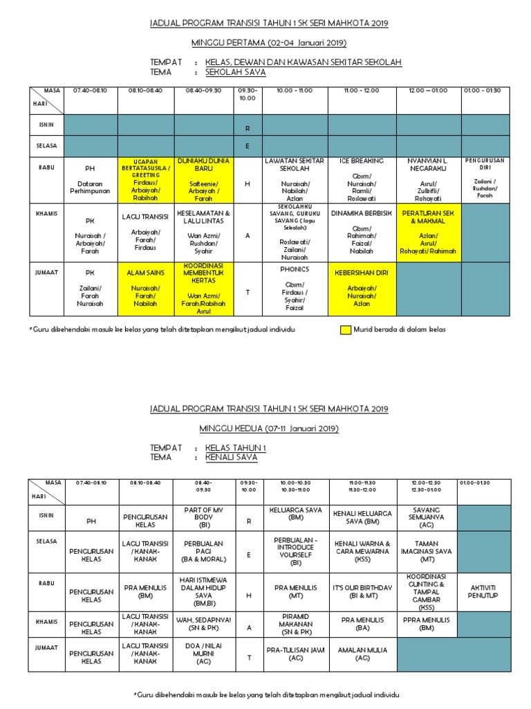 Jadual Program Transisi Tahun 1 2019