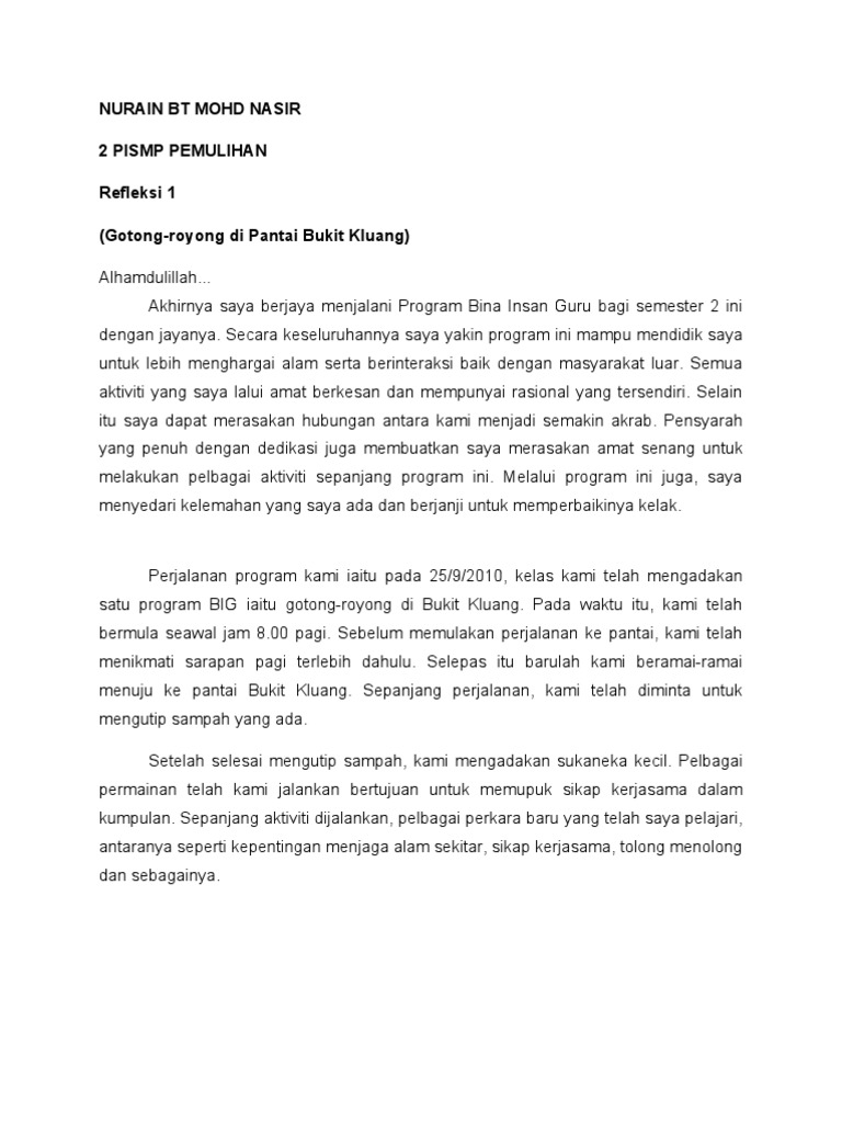 Doc Contoh Refleksi Zalina Razali Academia Edu
