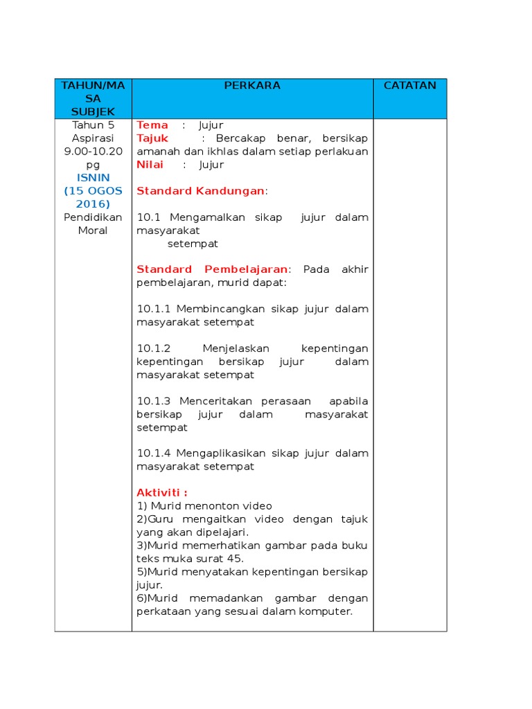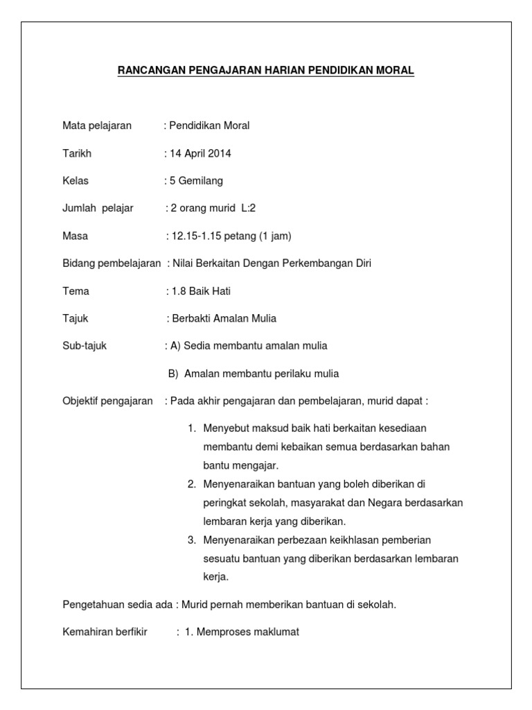 Doc Rancangan Pengajaran Harian Pendidikan Moral Tahun 5 Mem Mm Academia Edu