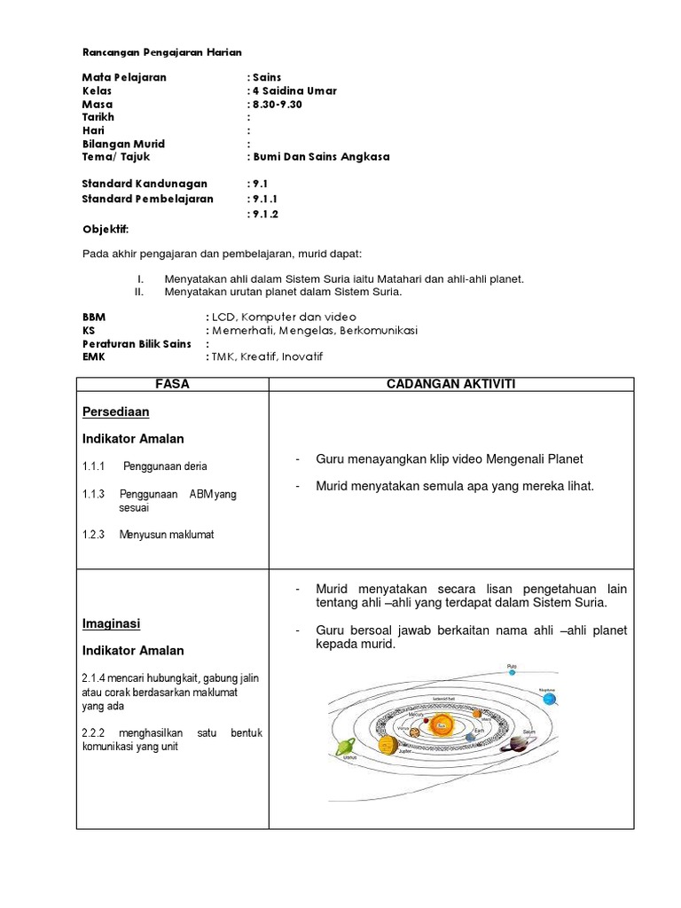 Rph 9 1 Sistem Suria Tahun 4