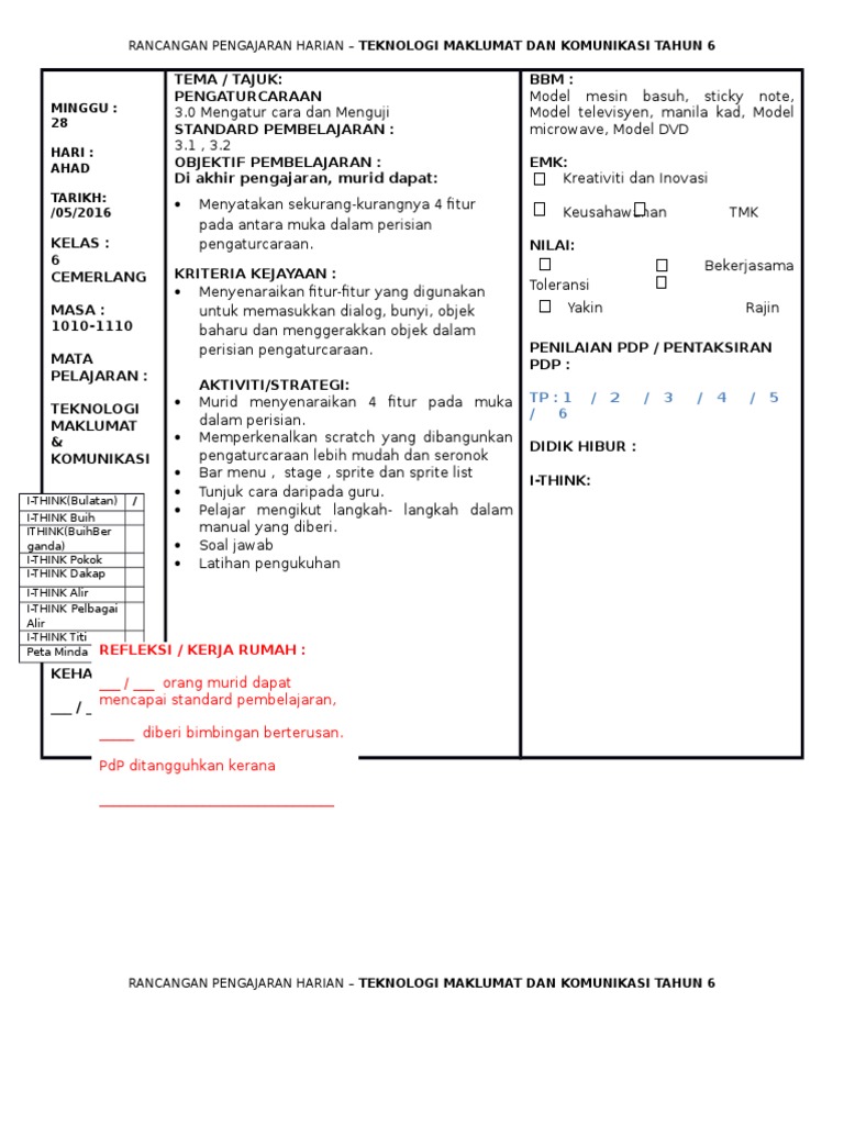 Rancangan Pengajaran Harian Tmk T6