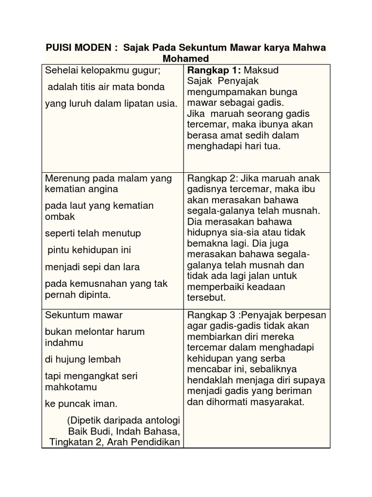 Sajak Pada Sekuntum Mawar Komsas Tingkatan 2