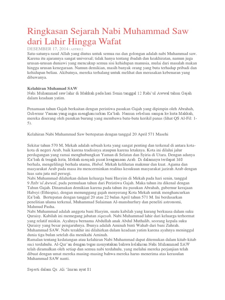 Doc Kisah Nabi Muhammad Saw Dari Lahir Hingga Wafat Docx Riza Satria Academia Edu