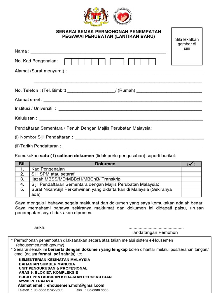 Senarai Semak Permohonan Penempatan Pegawai Perubatan Lantikan Baru