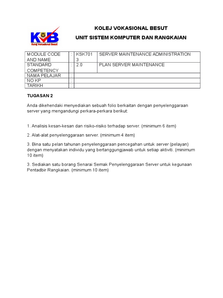 K3 Manage Computer Network Maintenance Struktur Pecahan Kerja Jadual Dan Garis Masa Sepanjang Tempoh Penyelenggaraan Hari Masa 10 00 Isnin Juruteknik Course Hero