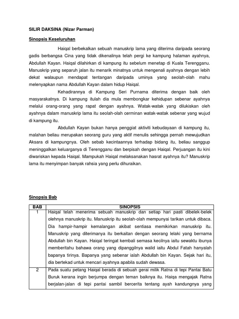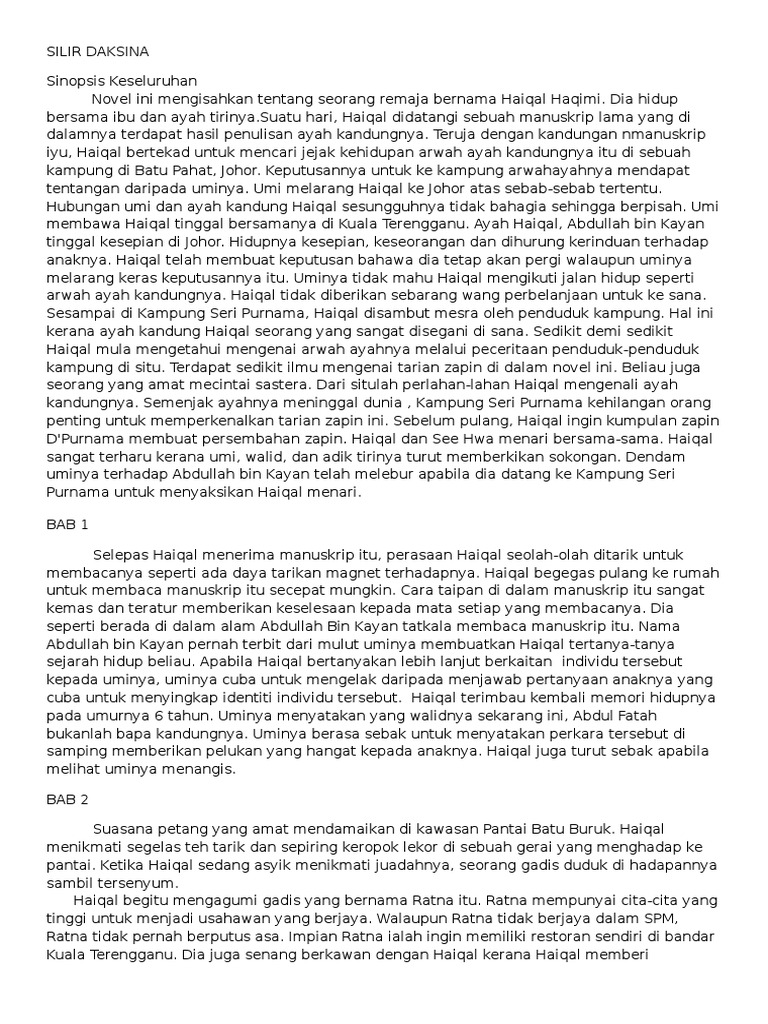 Bm Komsas Docx Sinopsis U2013 Novel Silir Daksina Bab 1 Haiqal Telah Menerima Sebuah Manuskrip Dan Setiap Hari Pasti Dibelek Belek Olehnya Manuskrip Course Hero