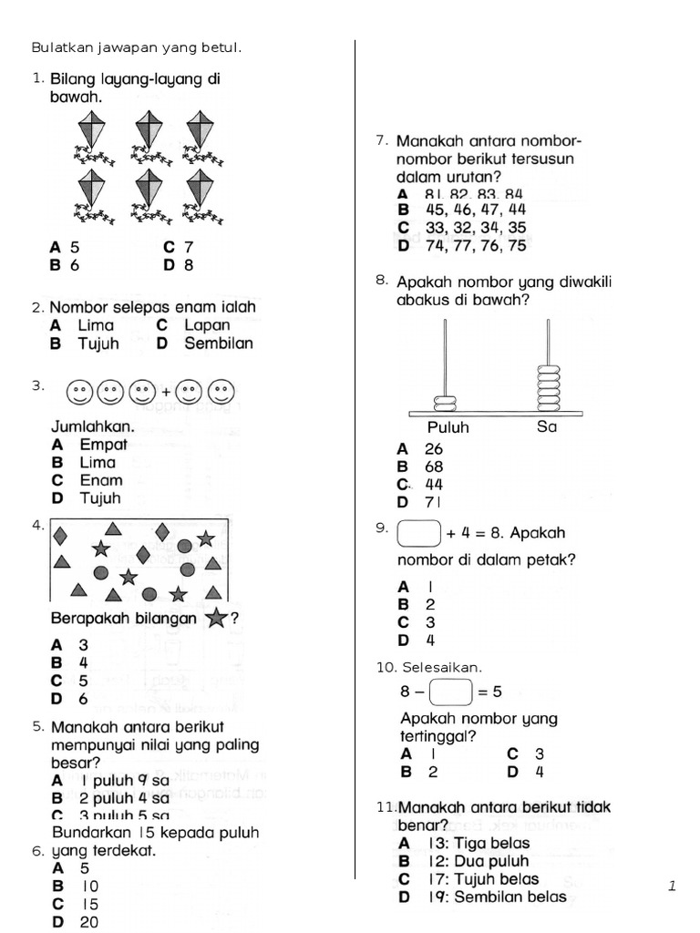 Kertas Soalan Matematik Tahun 1 Pdf Document
