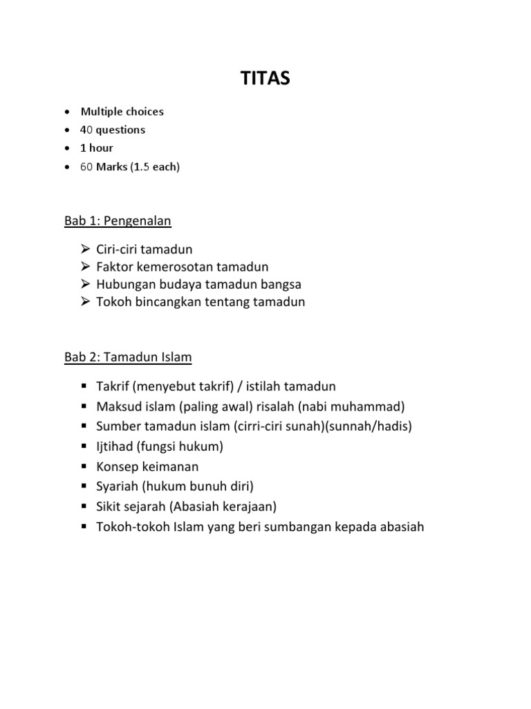 Nota Ringkas Titas Full Tamadun Islam Dan Tamadun Asia Studocu