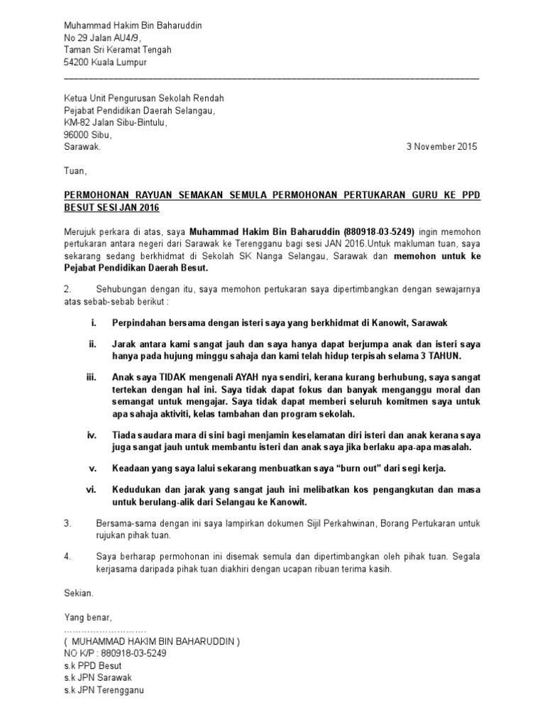 Contoh Surat Rayuan An Pertukaran Mengikut Suami