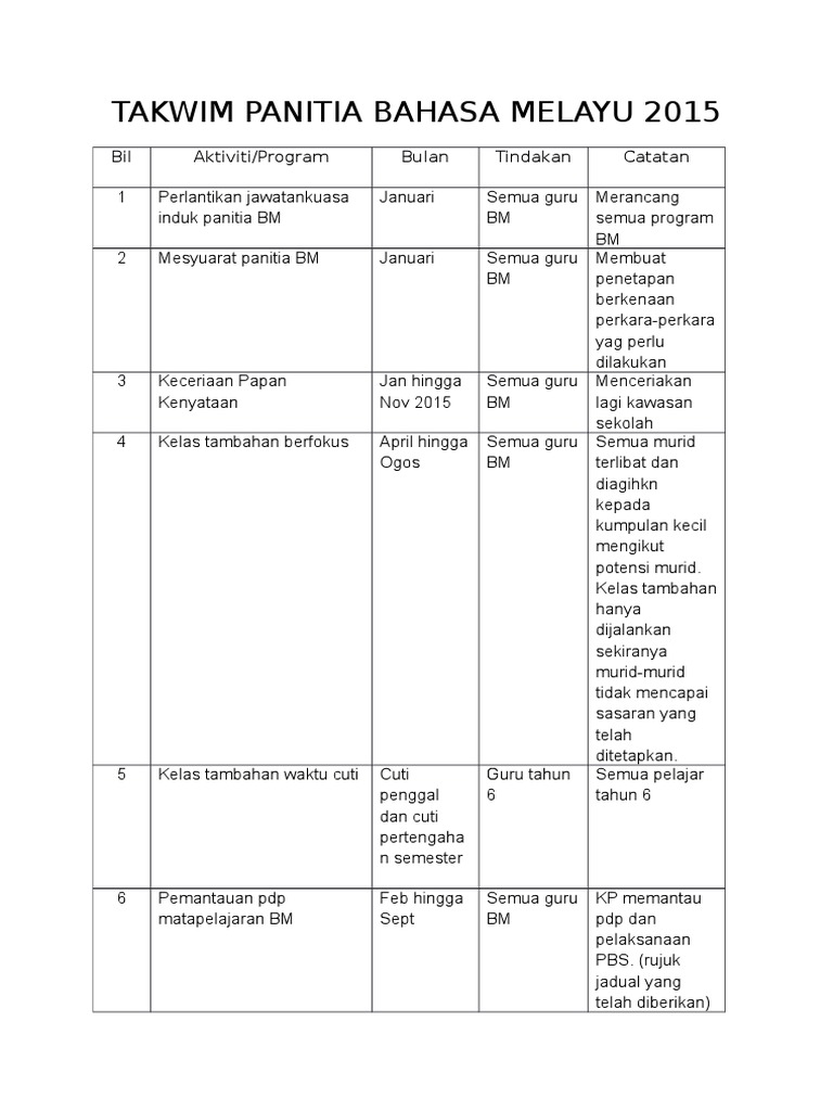198219600 Takwim Aktiviti Tahunan Panitia Bahasa Melayu 2014