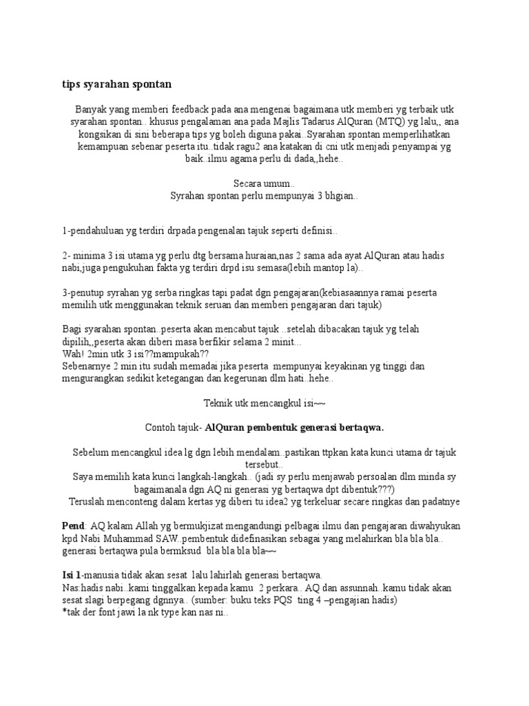 Contoh Teks Syarahan Mtq