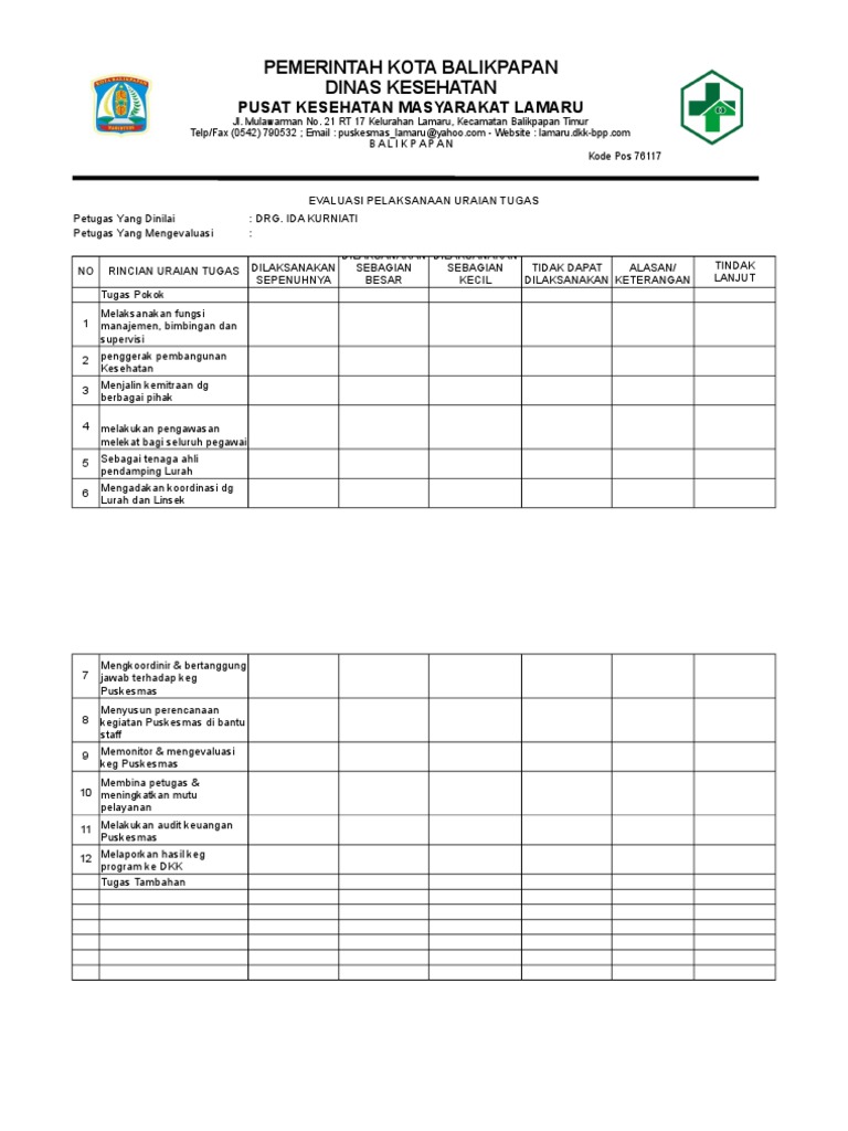 Evaluasi Uraian Tugas